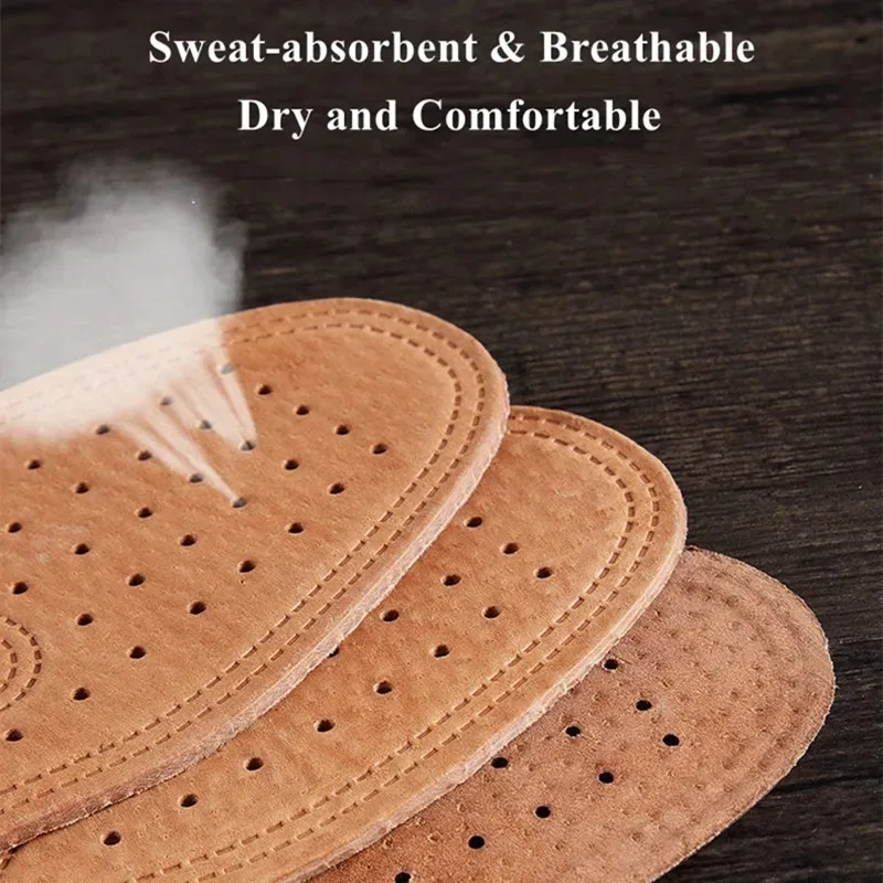 Real Cowhide Insole Leather Shoes Boots Shoe Inserts Soft Breathable Deodorant Anti-slip Template Shock Absorbing Insoles Sole