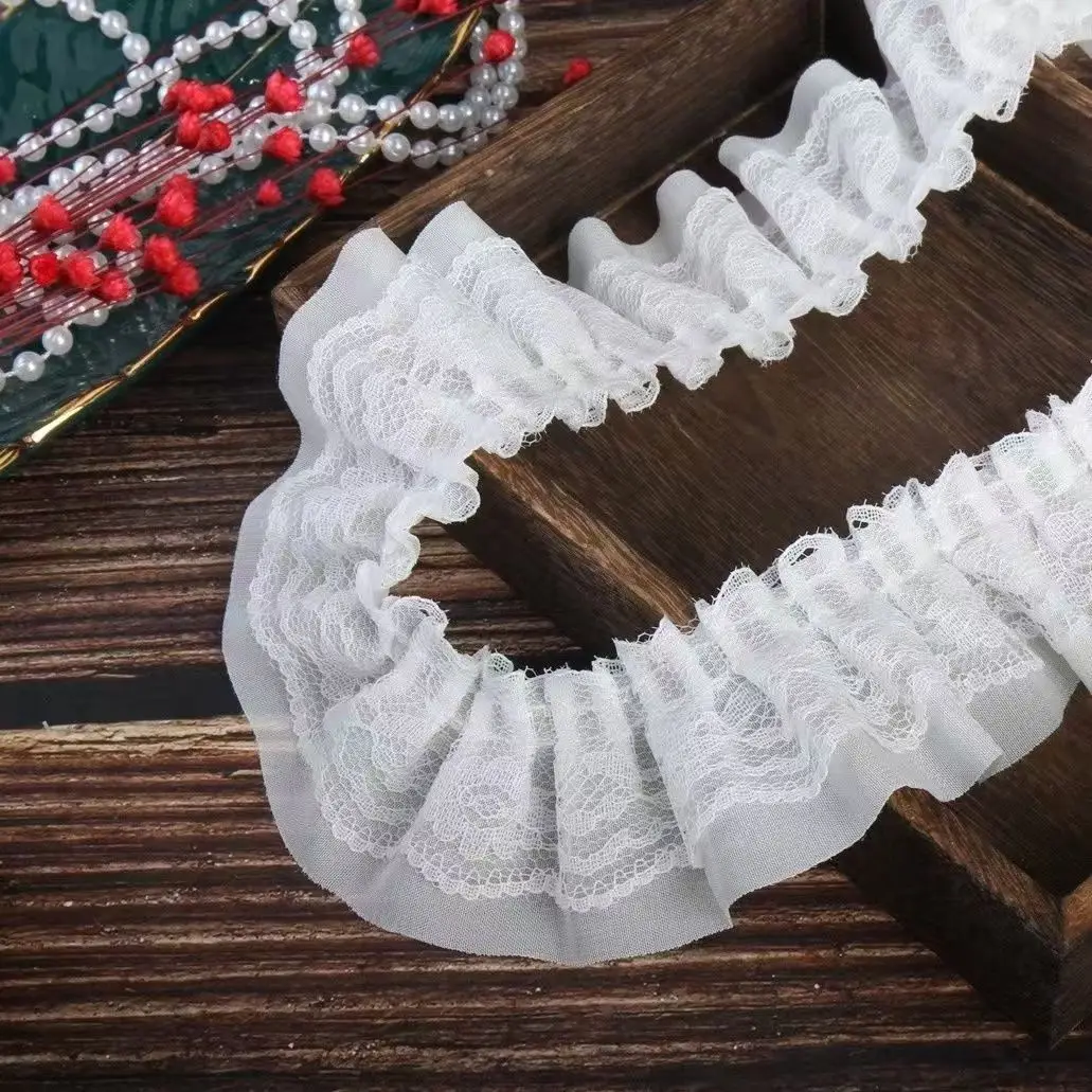 2 Yards Embroidery Ruffle Mesh Lace Fabrics For Clothing Home Wedding Accessory Bouquet Decor Handmade Sewing Trim DIY Crafts