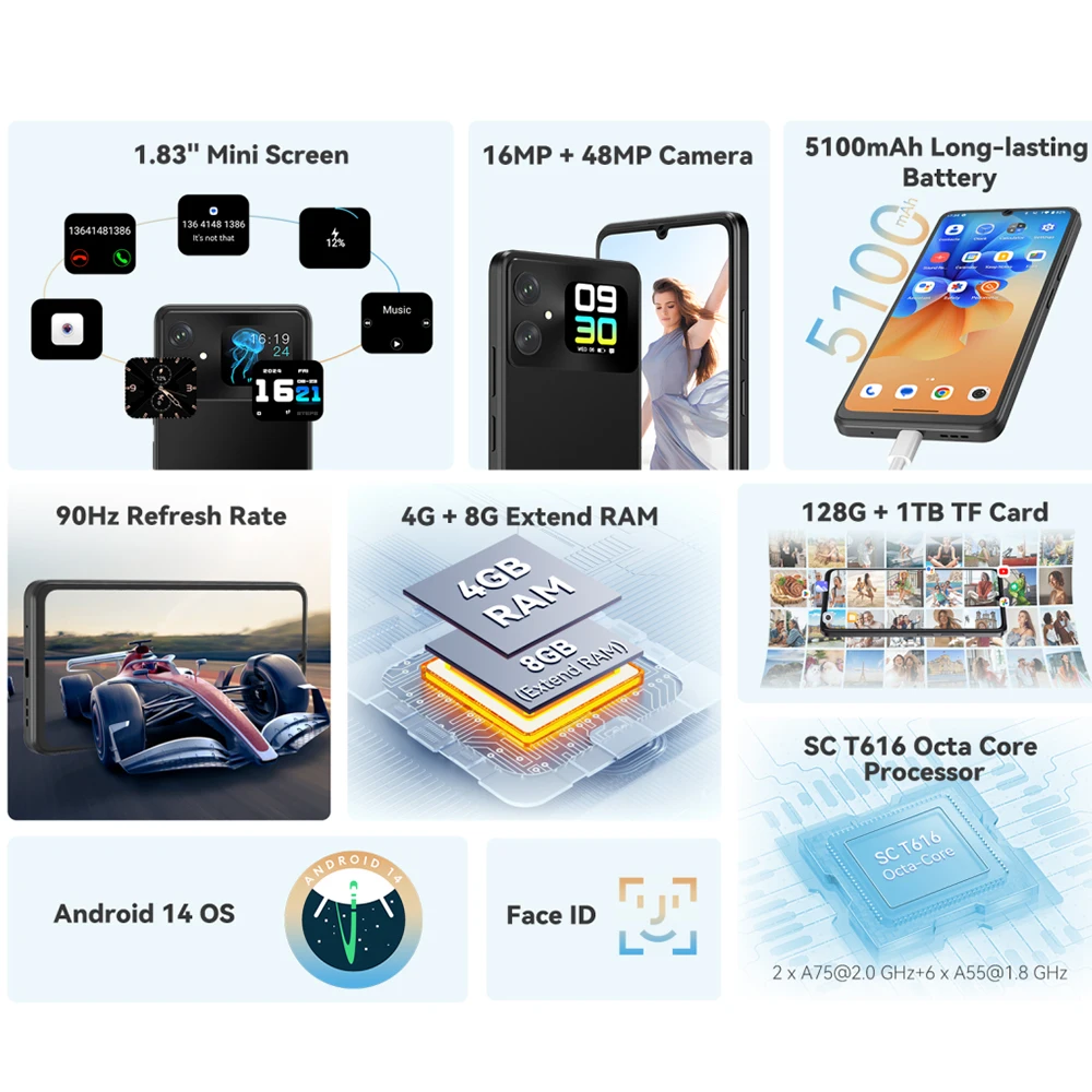 Cubot A20 Smartphone Android 14 12GB(4GB+8GB Extend)+128GB 90Hz 6.745''HD+Display Face ID 5100mAh Cell Phone