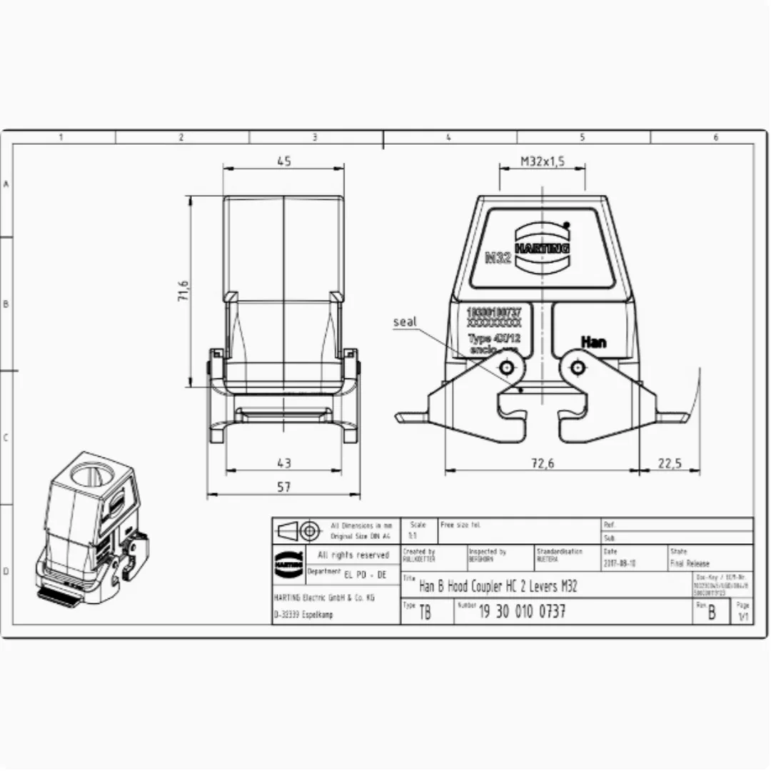 19300100737 Butt high upper shell HAN-10B-HTE-LB-M3 2 HARTING original