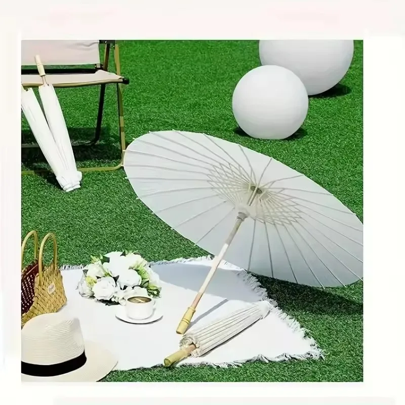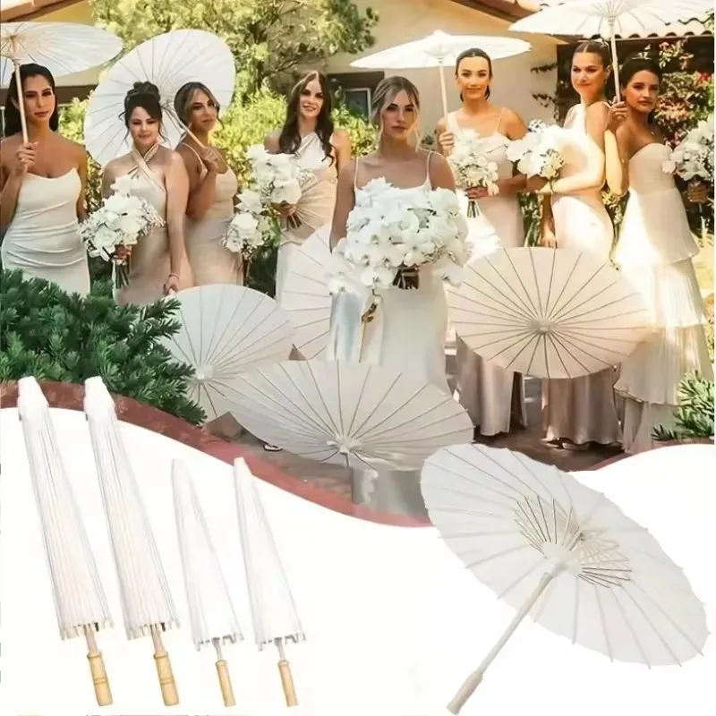 20cm-84cm Parasol Umbrellas Wedding Photo Cosplay Prop Paper Umbrella DIY Hand-painted White Umbrella Summer Whites Party Decor