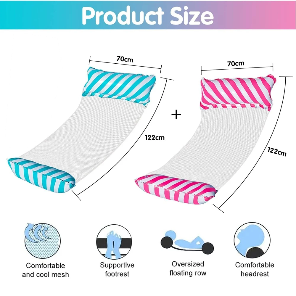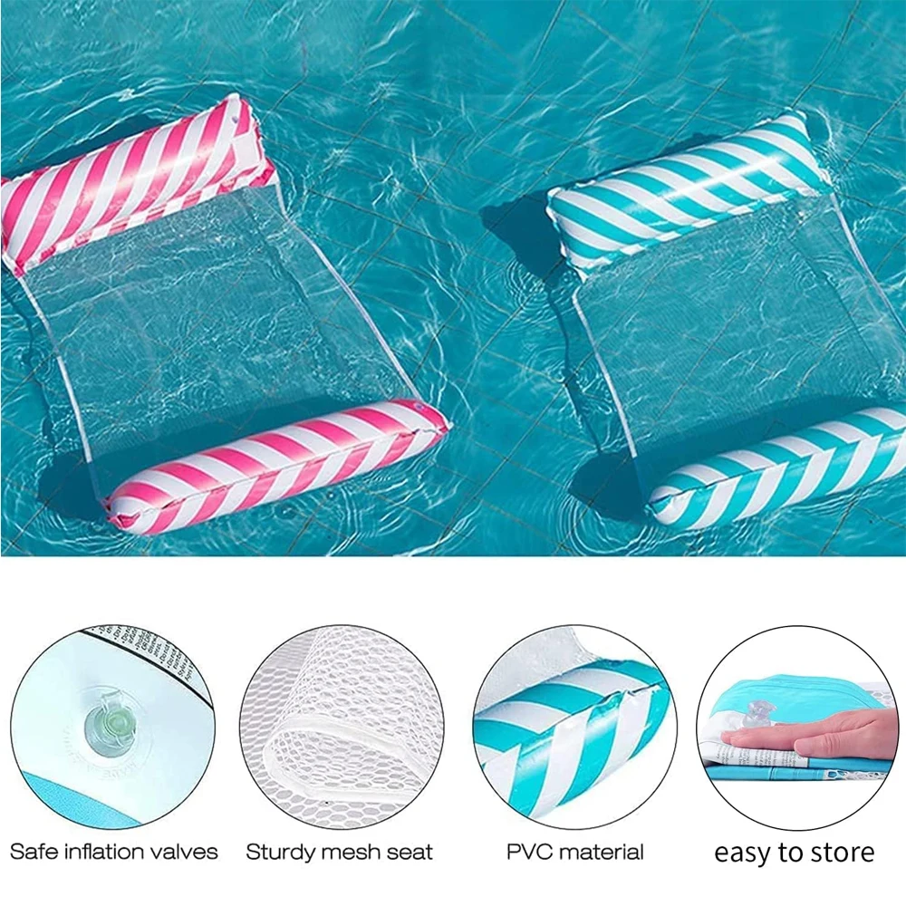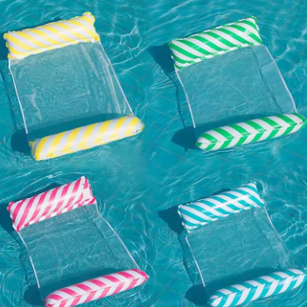 Foldable Striped Inflatable Lounge Chair, Suitable For Swimming Pool Parties And Beach Leisure Floating Beds With Net Backrest