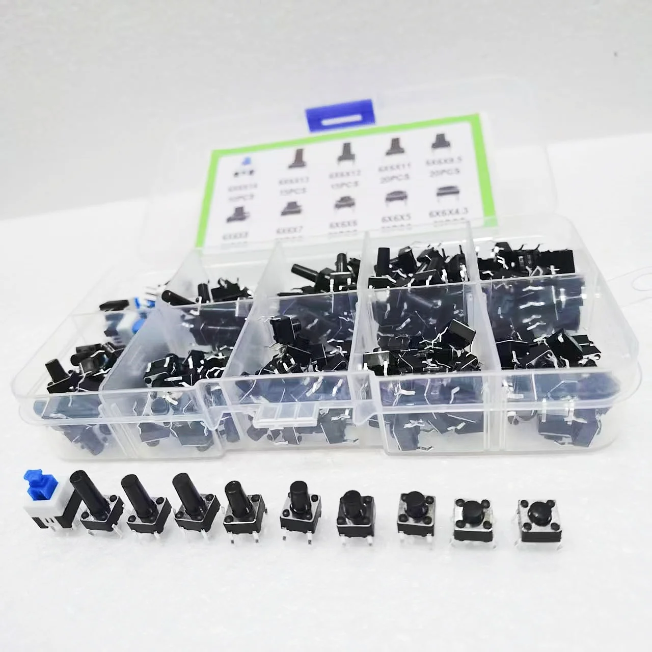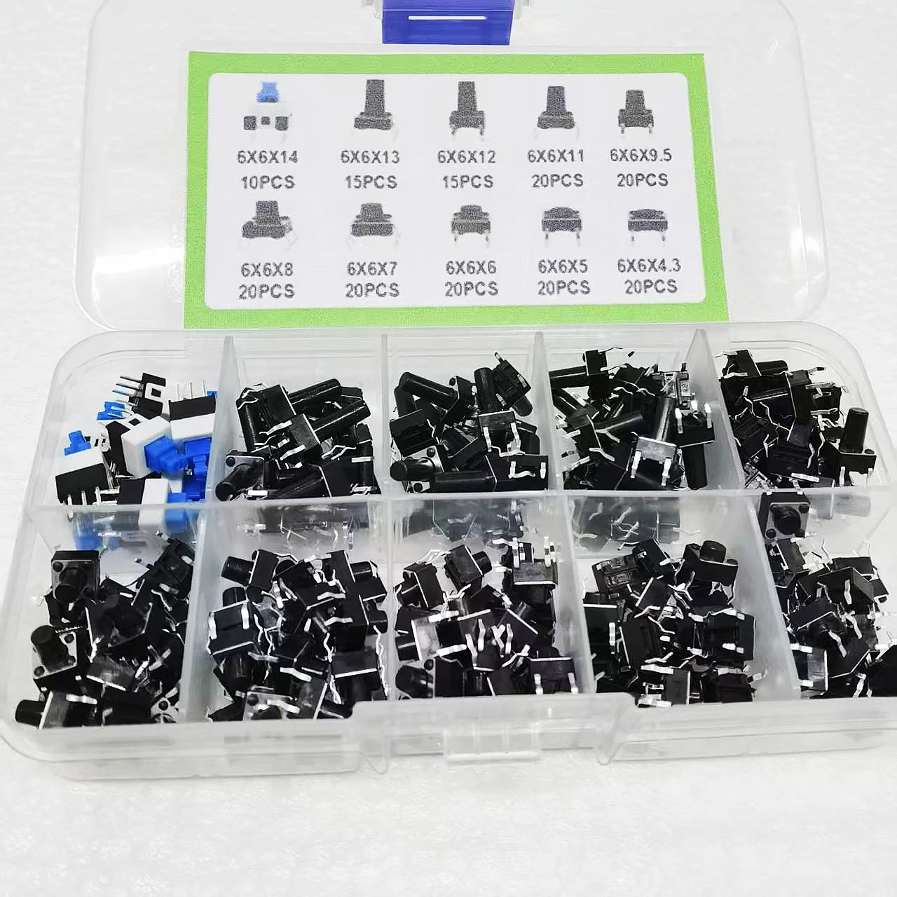 10 Types of 180pcs Button Switch Direct Insertion Light Touch Switch Button Switch Classification Box Kit