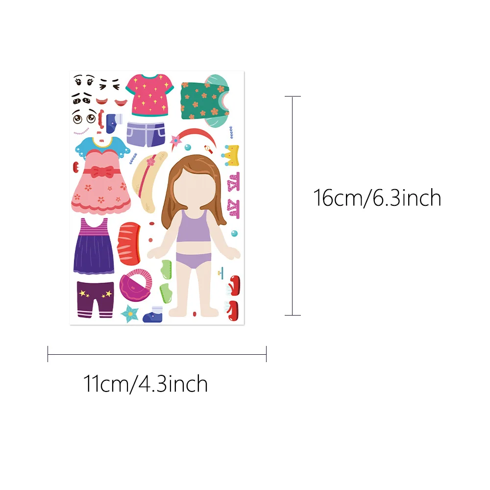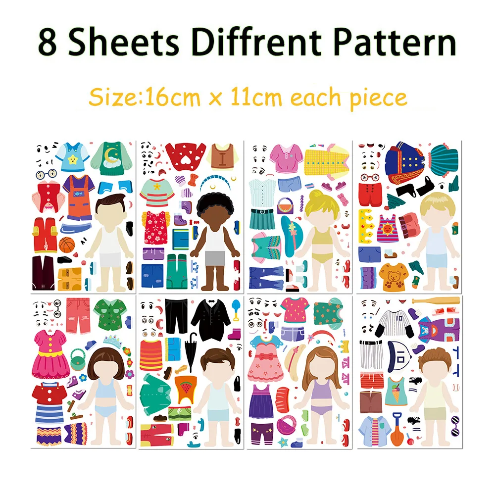 8Pcs Children's Dress Up Puzzle Stickers Cute Cartoon Creative Fun Children's Puzzle Account Material Waterproof Stickers