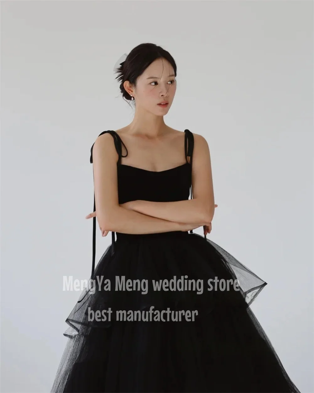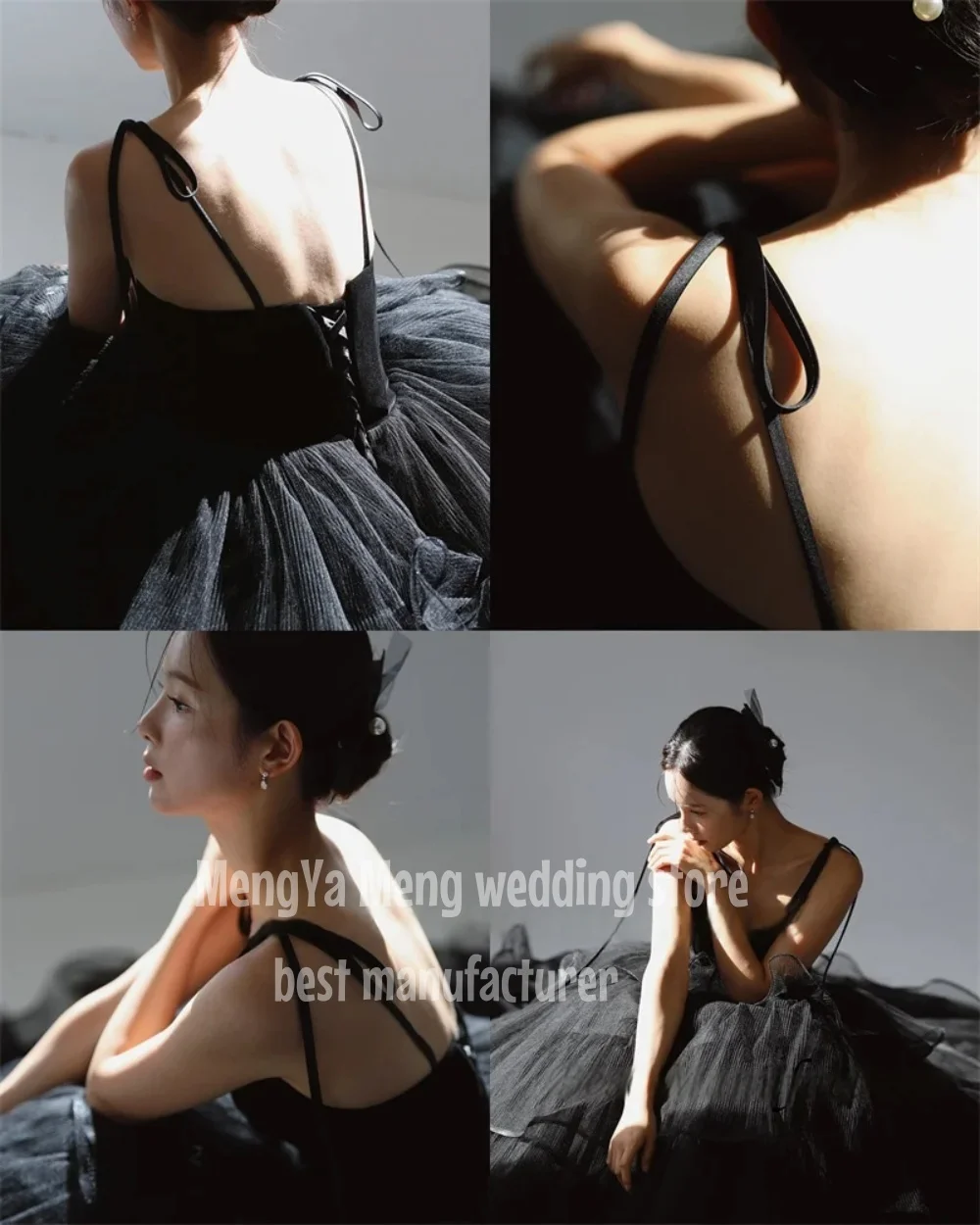 Tulle Tiered Evening Dresses Korea Black Wedding Party Layered Photo shoot Spaghetti Straps Floor Length Bride Gowns Corset Back