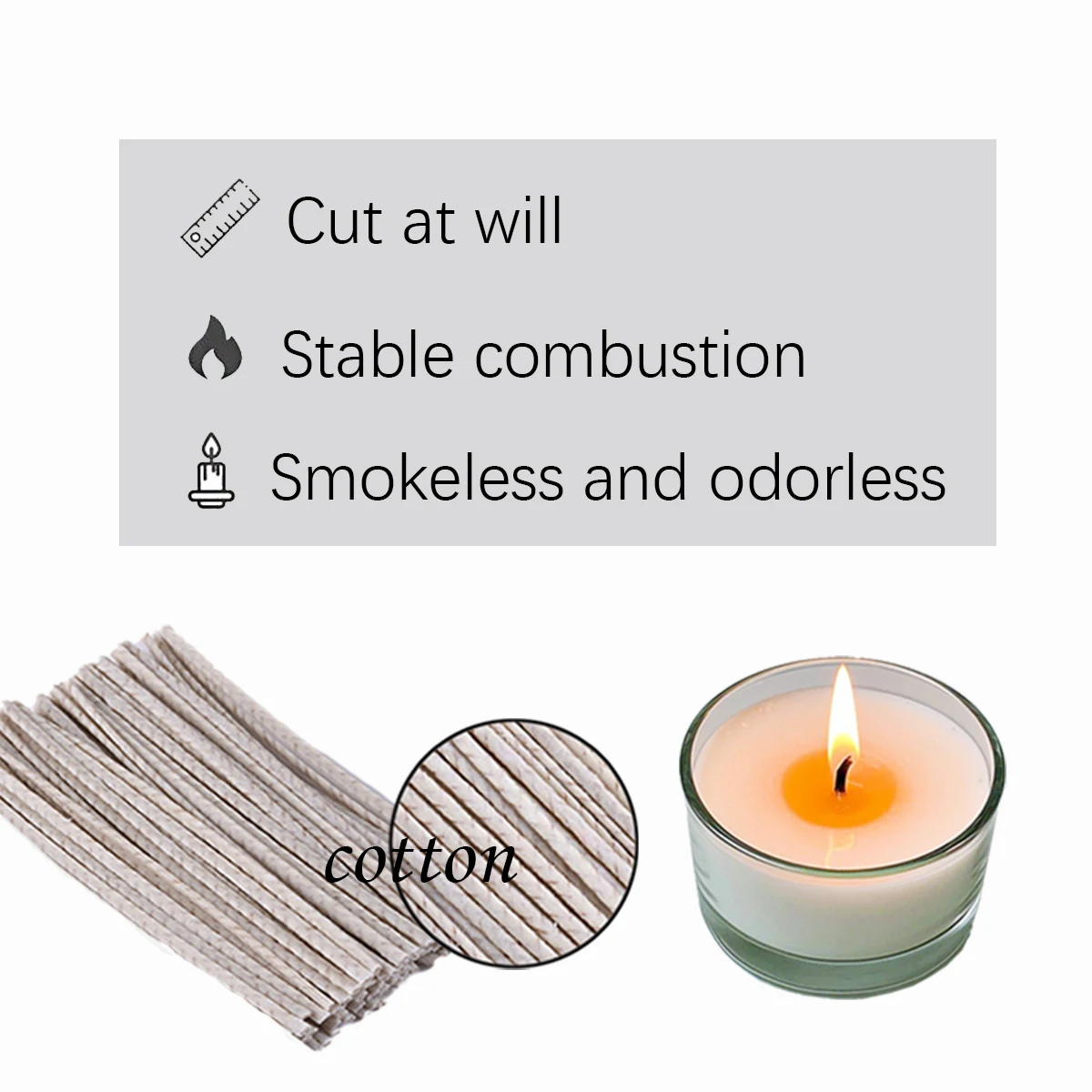 aliexpress , ali , shop , ali shop , online , store , online shop , online store , buy , sell , 100Pcs 6/10/15/20Cm Waxed Cotton Candle Wicks Smokeless Wax Core DIY Soybean Wax Core Woven Kerosene Lamp Candle Making Supplies