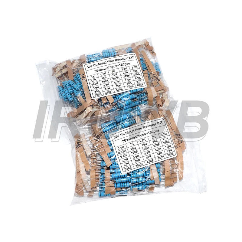 1/2W 1W 2W 3W Resistance 1% Metal Film Resistor Assortment Kit Set 30values 1R~750R 1K~820K Ohm