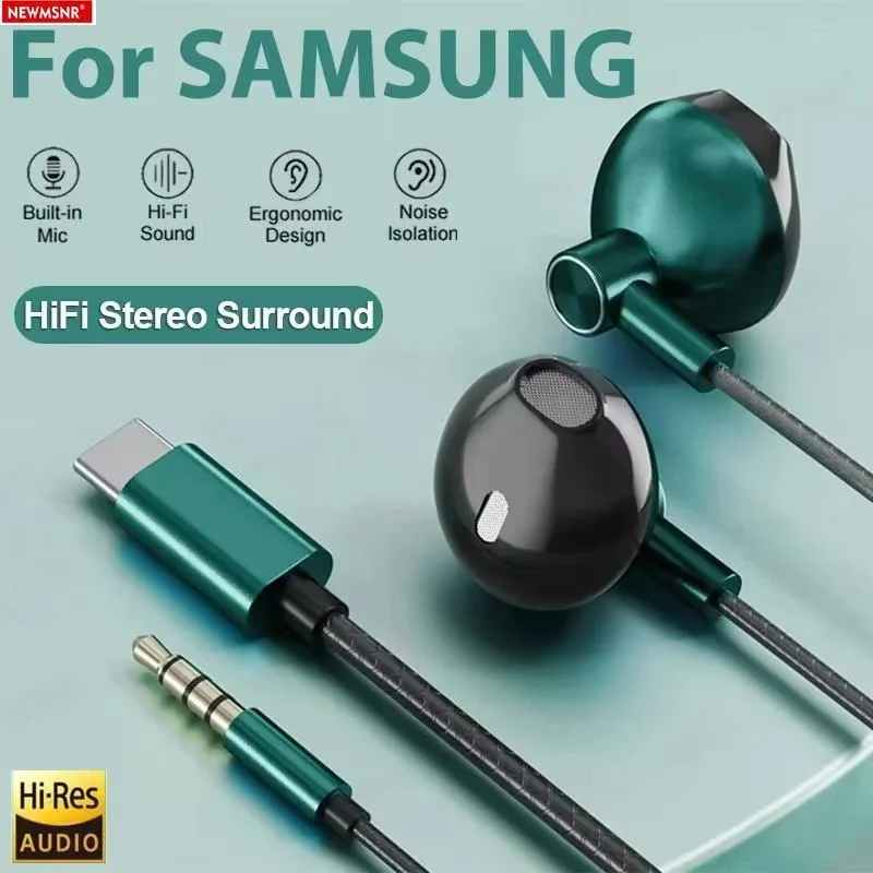 Type C&3.5mm Headphones Volume Control Headset With HD Mic Wired Earbuds For iPhone15/16 Samsung Galaxy Earphones