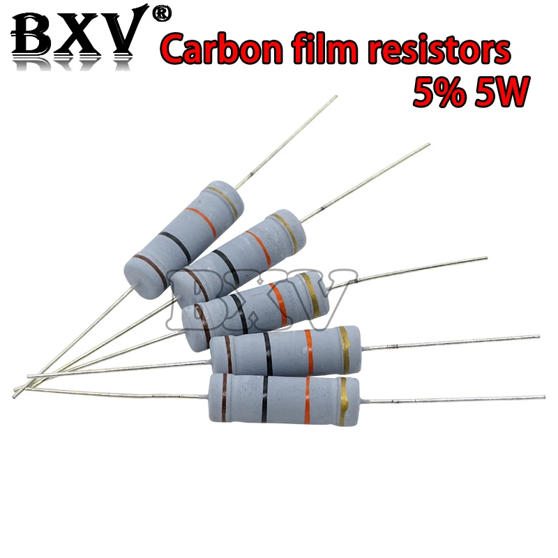 10PCS 5W Carbon Film Resistor 5% 1R ~ 1M 2.2R 10R 22R 47R 51R 100R 150R 470R 1K 4.7K 10K 47K 10 22 47 51 100 150 Ohm Resistance
