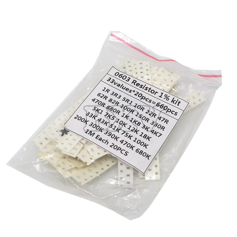 0603 SMD Resistor Kit Assorted Kit 1Ohm-1M Ohm 1% 33ValuesX 20PCS=660PCS Sample Kit IBUW
