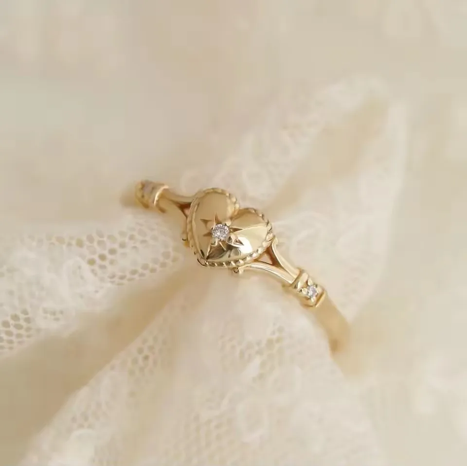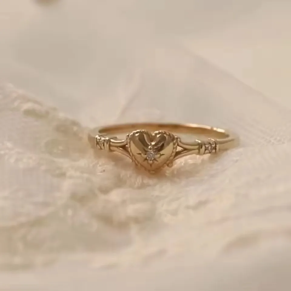 Hot Selling Gold Plated Stainless Steel Rings For Women Heart Ring Jewelry Accessories Wholesale Size 6-11