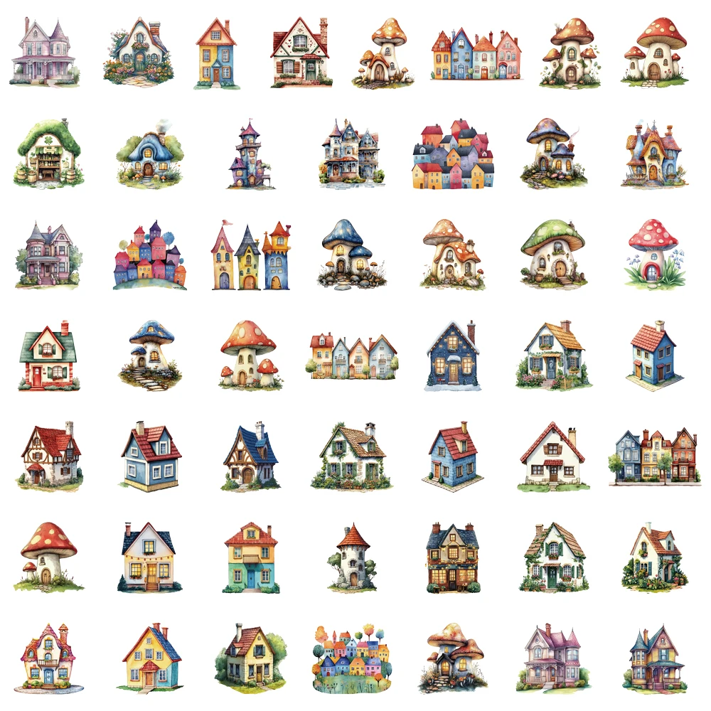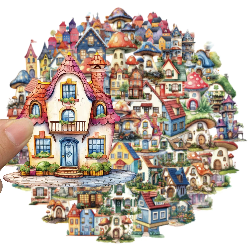 50PCS Fairy Tale House PET Material Stickers DIY Luggage Speaker Water Cup Notebook Waterproof Stickers