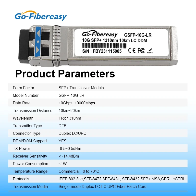 10G LR 10km SFP Transceiver Module SMF 1310nm Duplex LC SFP+ Fiber Optical Module For Cisco SFP-10G-LR,Mikrotik,Ubiquiti Switch