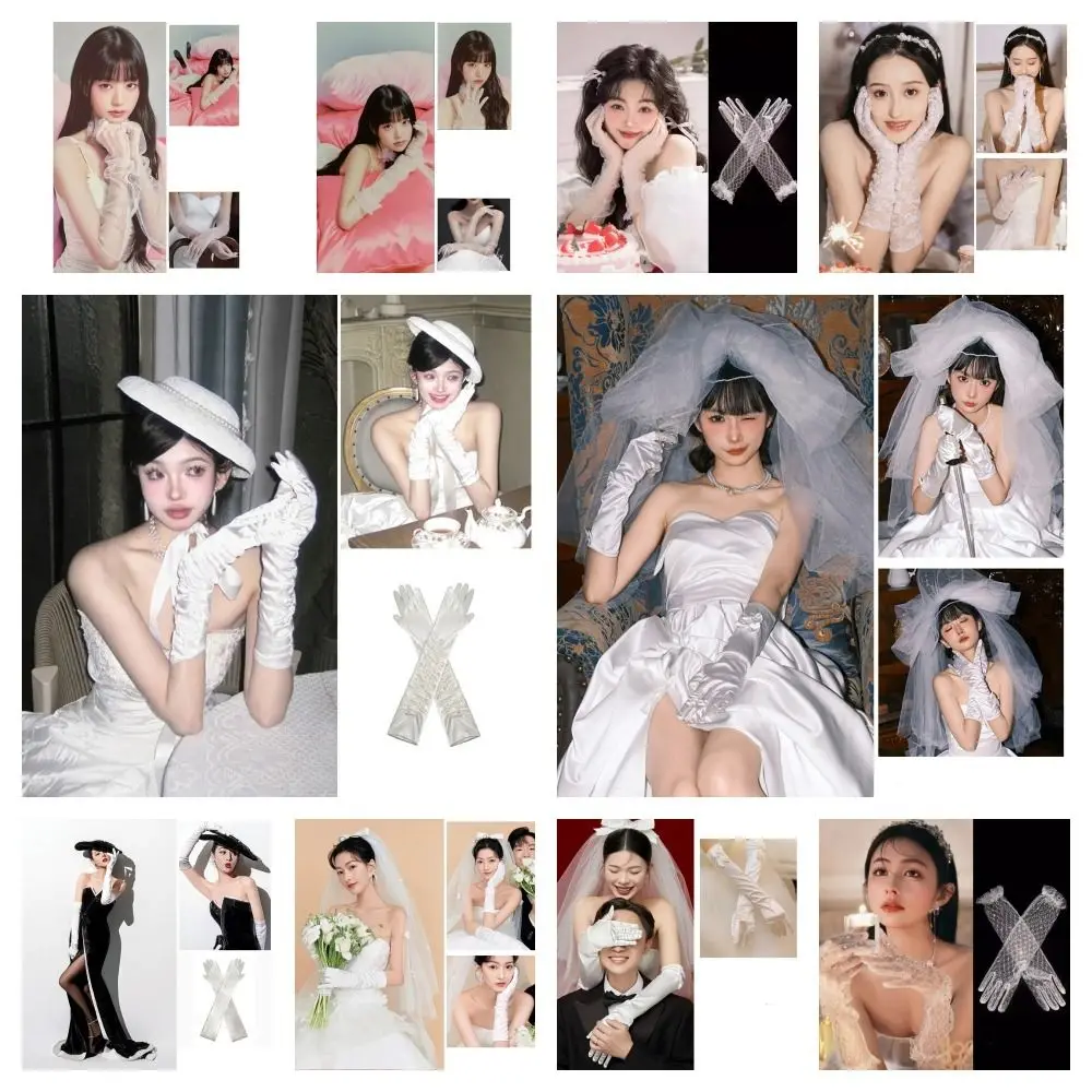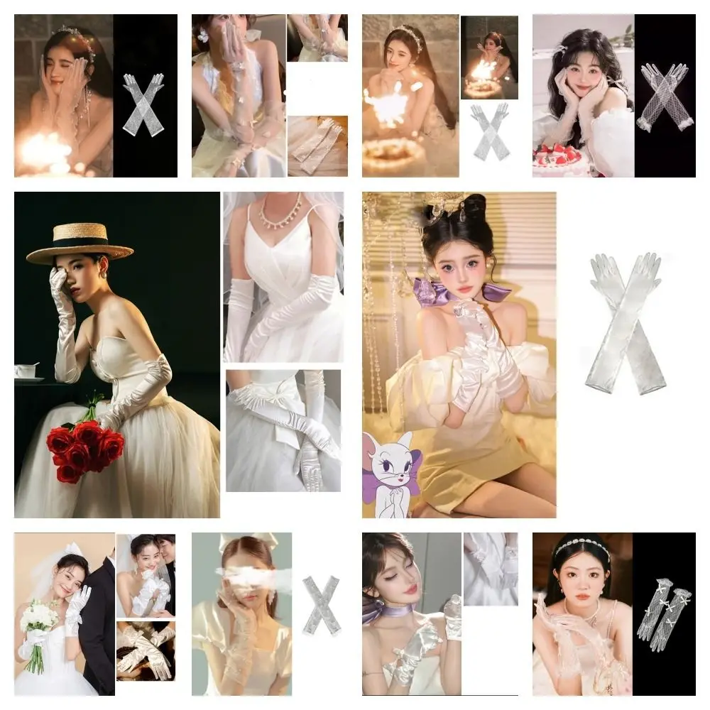 Temperament White Satin Long Gloves Lace Sweet Wedding Bridal Gloves Vintage Elastic Long Finger Mittens Dinner