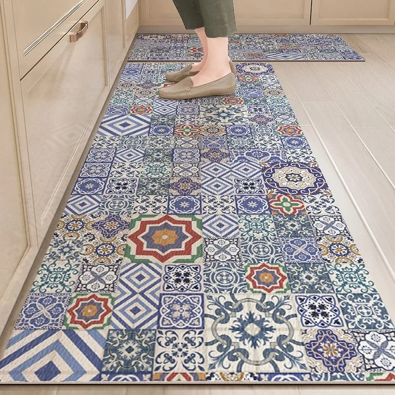VIKAMACrystal Velvet Kitchen Carpets Oil-Proof And Water-Proof Floor Mats, Household Washable, Long, Dirt-Resistant Home Decor