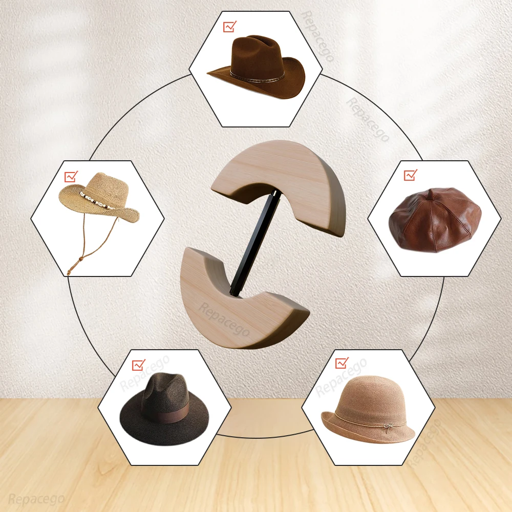 Repacego Adjustable Wooden Hat Stretcher Cap Shape Maintainer Premium Fedora Hat Rack for Storage Cowboy Baseball Hat Holders