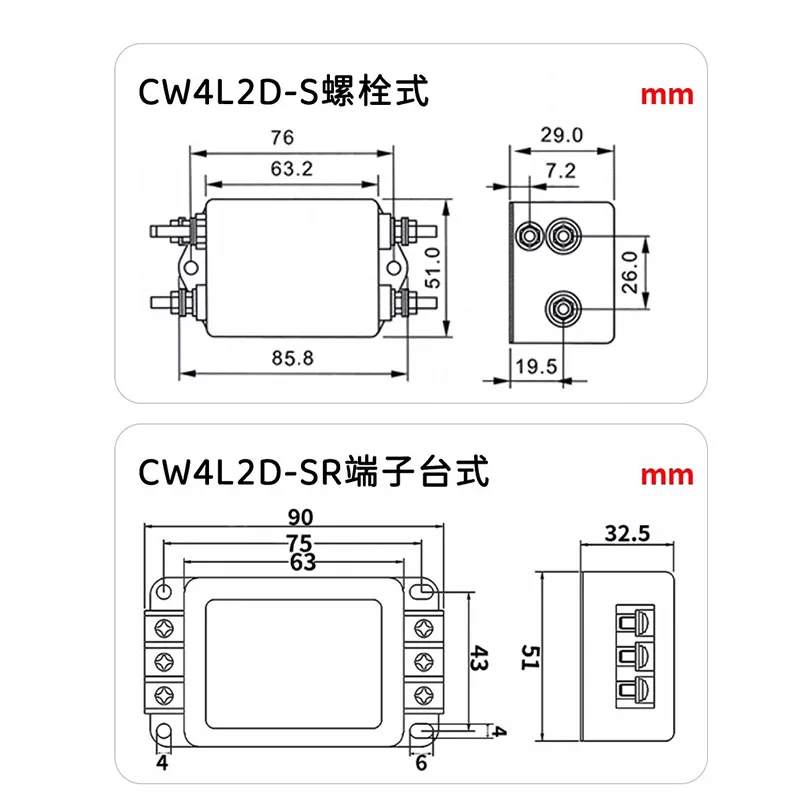 EMI filter Terminal type DC two-stage CW4L2D-3/6/10/20A-SR power supply filter power purifier Anti-interference
