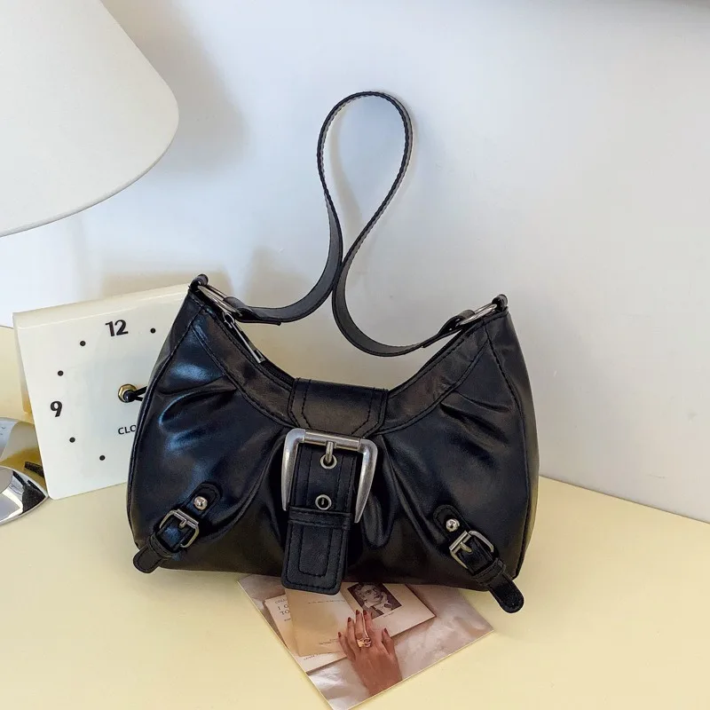 Large-capacity pleated armpit bag for women 2025 new retro commuter temperament motorcycle old style shoulder bag