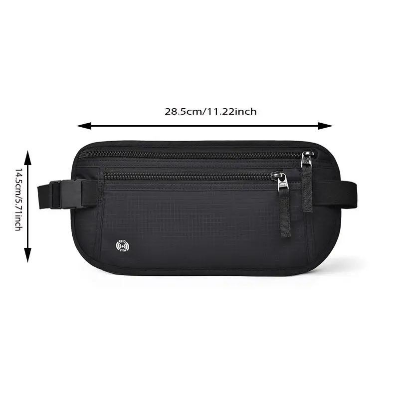 Travel Waist Bag Money Belt Slim Passport Holder RFID Blocking Travel Invisible Pouch Protect Cash Credit Cards Travel Documents