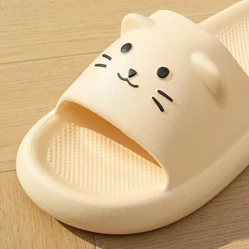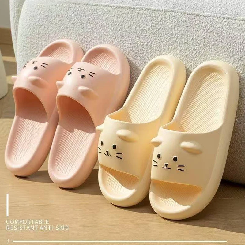 Printting Cute Cat Women Slippers Summer Indoor Soft Cartoon Sandals Bathroom Anti-slip Outdoor Comfy Men Leisure Shoes Couple