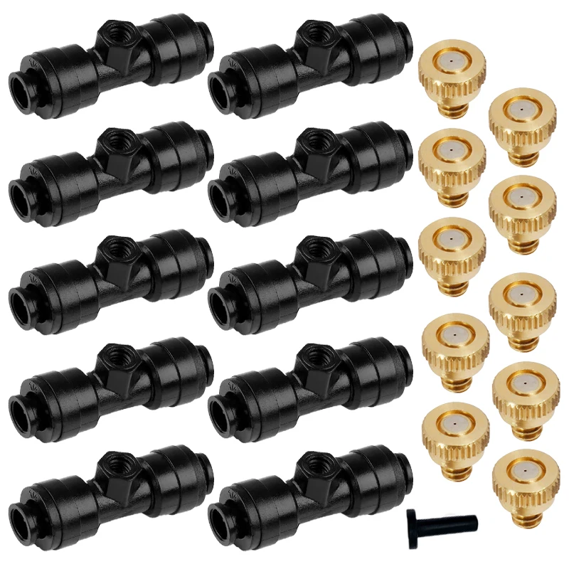 10Pcs High Pressure Misting Fog Nozzles with Quick Tee Connector for Landscaping Sprayers