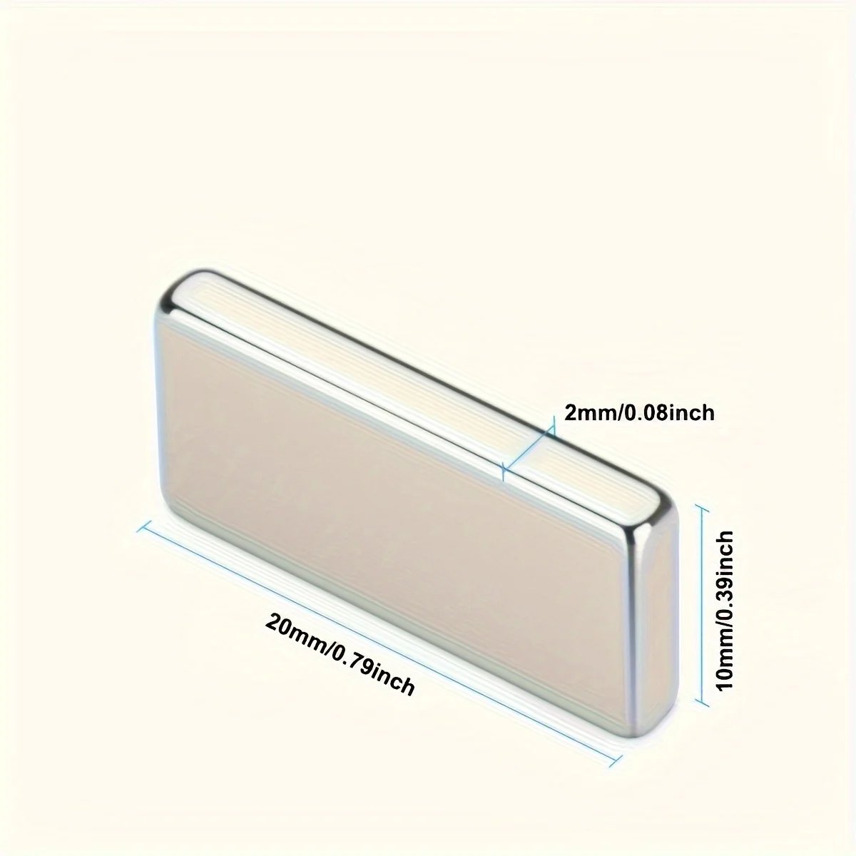 20 X 10 X 2mm rectangular magnet, long bar magnet, micro magnet. Suitable for science, tool libraries, laboratories, lockers, ar