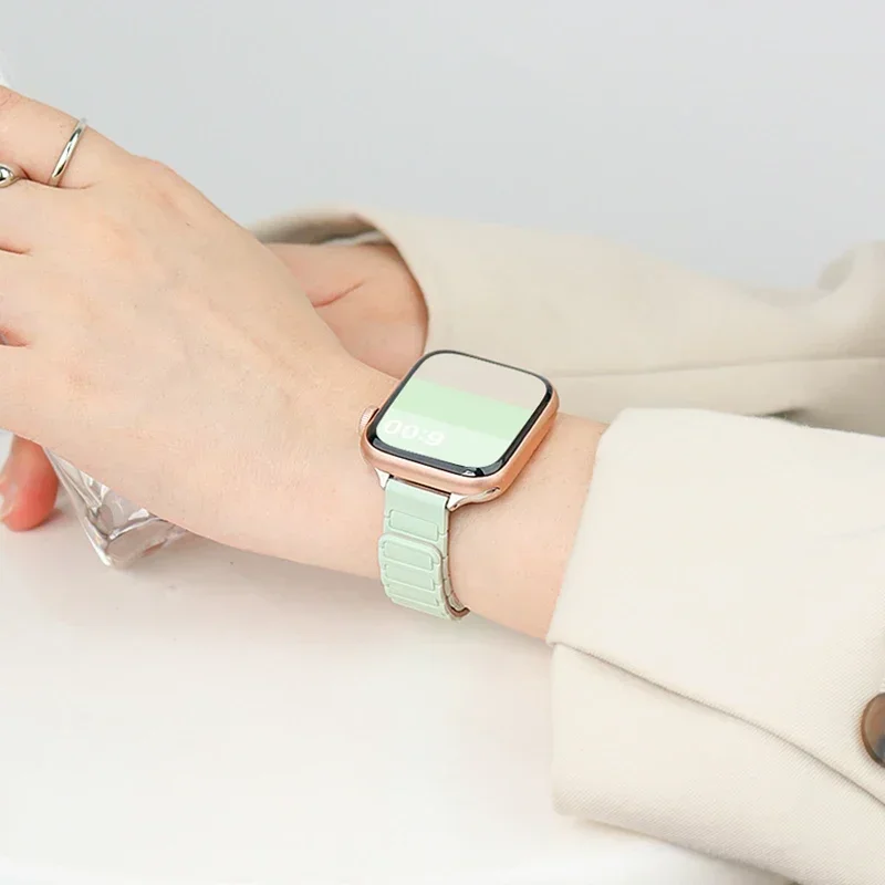 Slim Magnetic Strap For Apple Watch Bands 45mm 38mm 49mm 40mm 42mm 41mm Silicone Sport Bracelet iWatch Series ultra 10 9 8 se 7