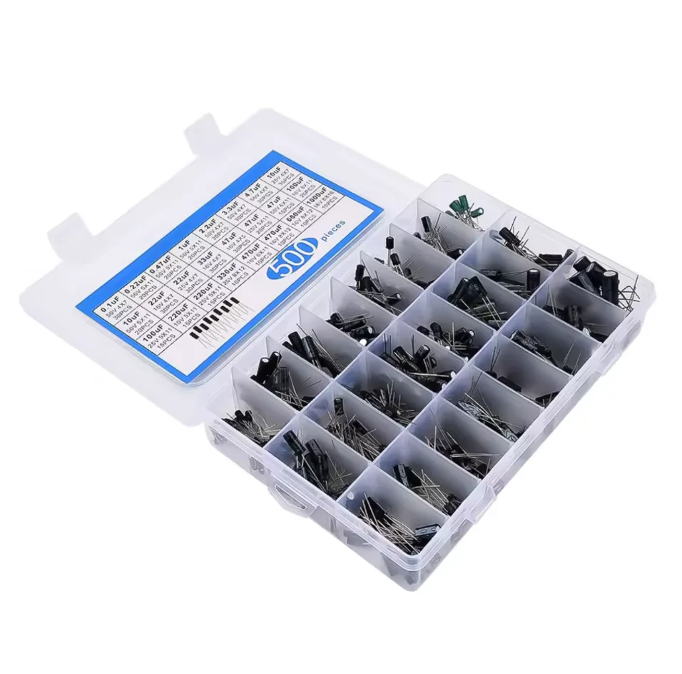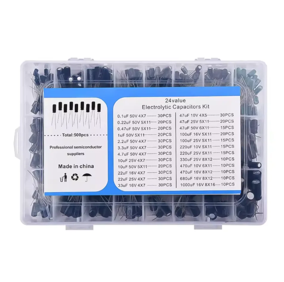500pcs/Box Aluminum Electrolytic Capacitor Electrolytic Capacitors Kit 24Value Range 0.1uF-1000uF Capacitors Assortment Kit