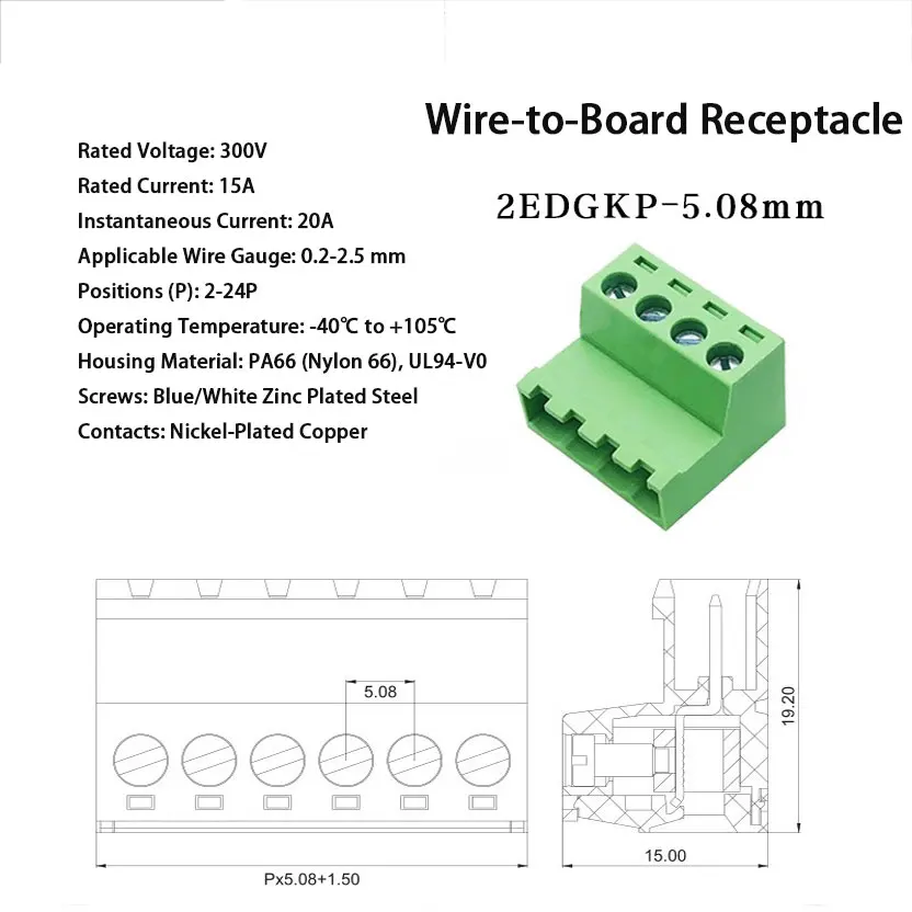 Industrial Terminal Block 5.08mm/Screw Clamp 300V 10A/PA66 Flame Retardant/Solderless Clamp /Lighting/Appliance/Aviation Use