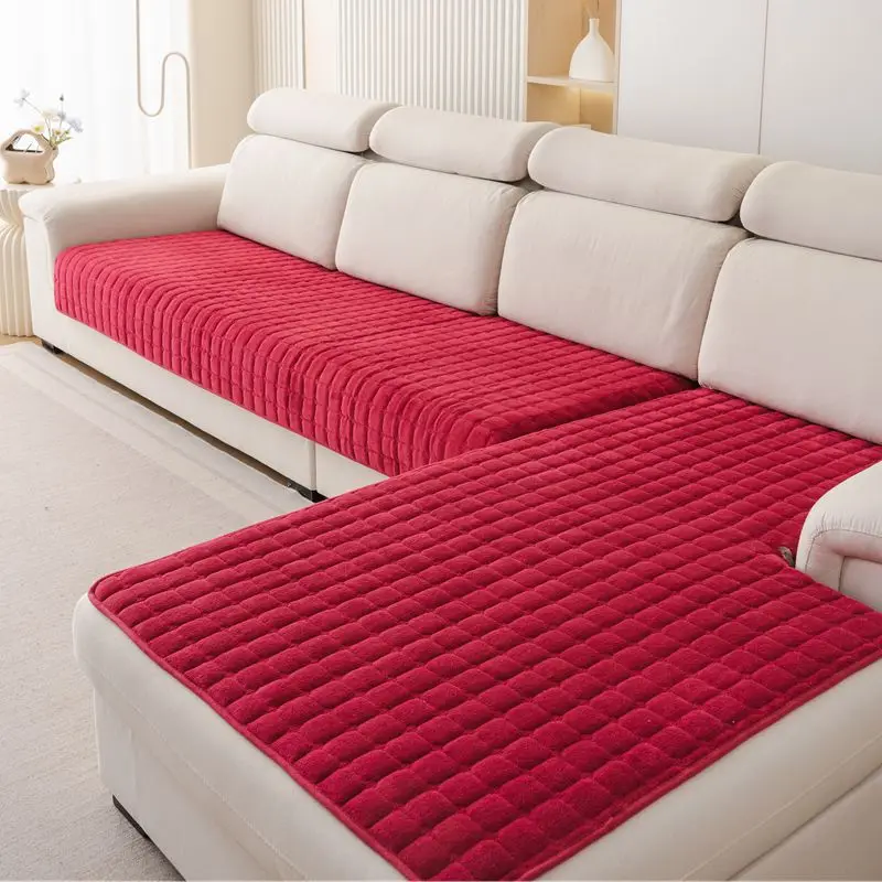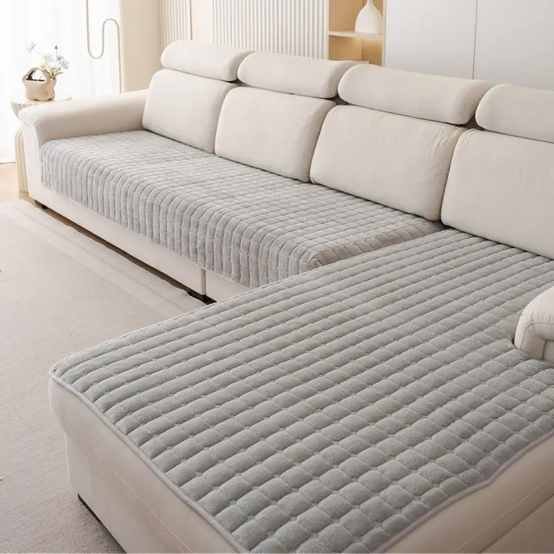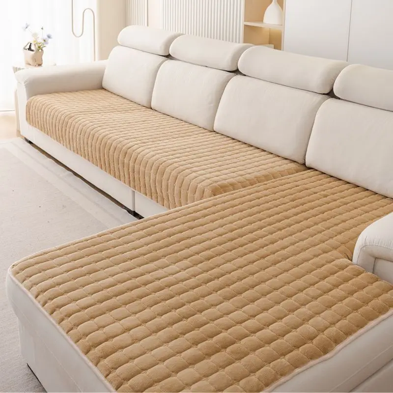 Plush plaid sofa cushion non-slip four seasons universal living room sofa cover simple modern thickened velvet cushion towel