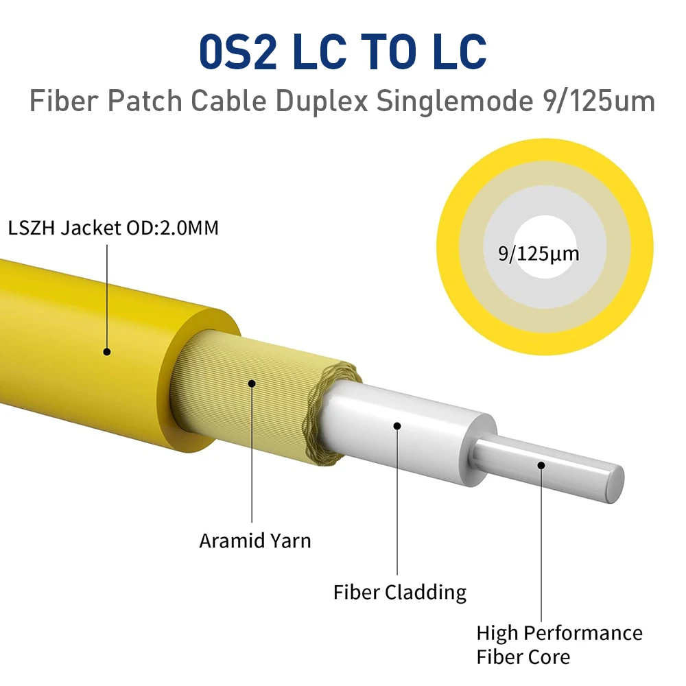 Natalink OS2 LC-LC Fiber Optic Patch Cable Duplex Single Mode 1G/10G Fiber Optic Cable Cord 9/125µm SMF 2.0mm Fiber Cable Jumper