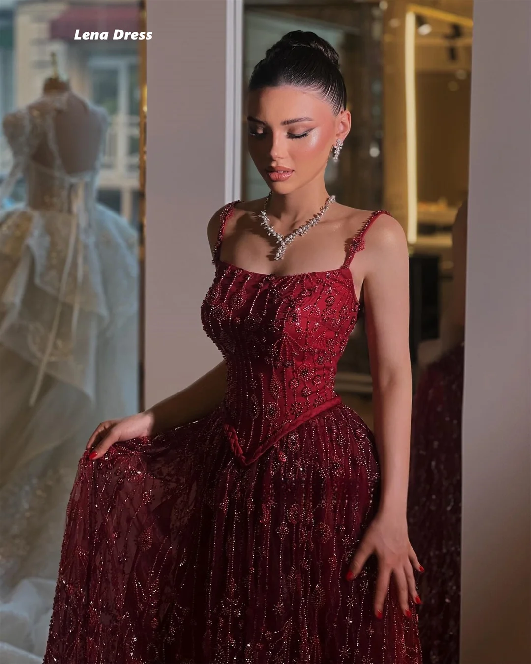 Lena Elegant Gown Lace Prom Dresses 2025 Luxury Dresses for Party Dresses Woman 2025 Beads Custom Made Robe De Cocktail Femme