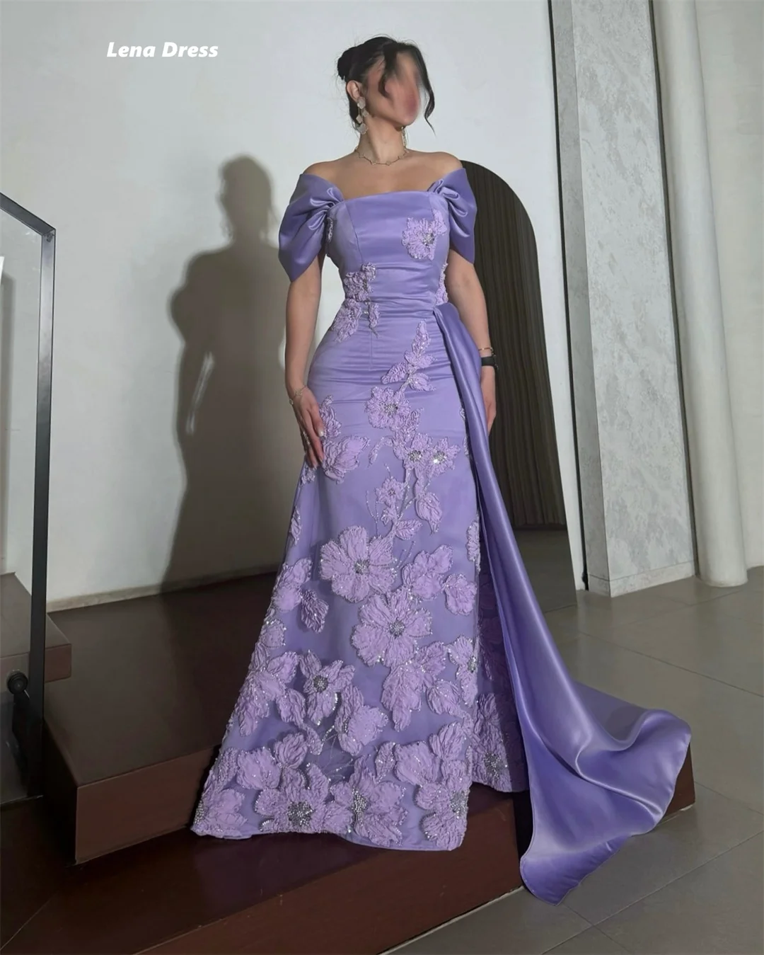Lena Flower Embroidered Lace Prom Dresses 2025 Luxury Evening Dress Woman Custom Made Fish Tail Shawl Ball Gowns Robe Soiree