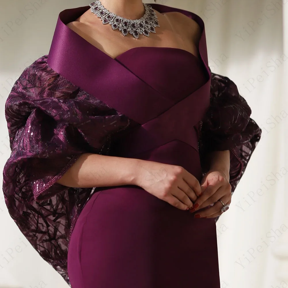 Customized Mermaid Prom Dresses Floor-Length Off The Shoulder Half Sleeve Evening Gown Fashion Sequined Simple Draped Party Gown