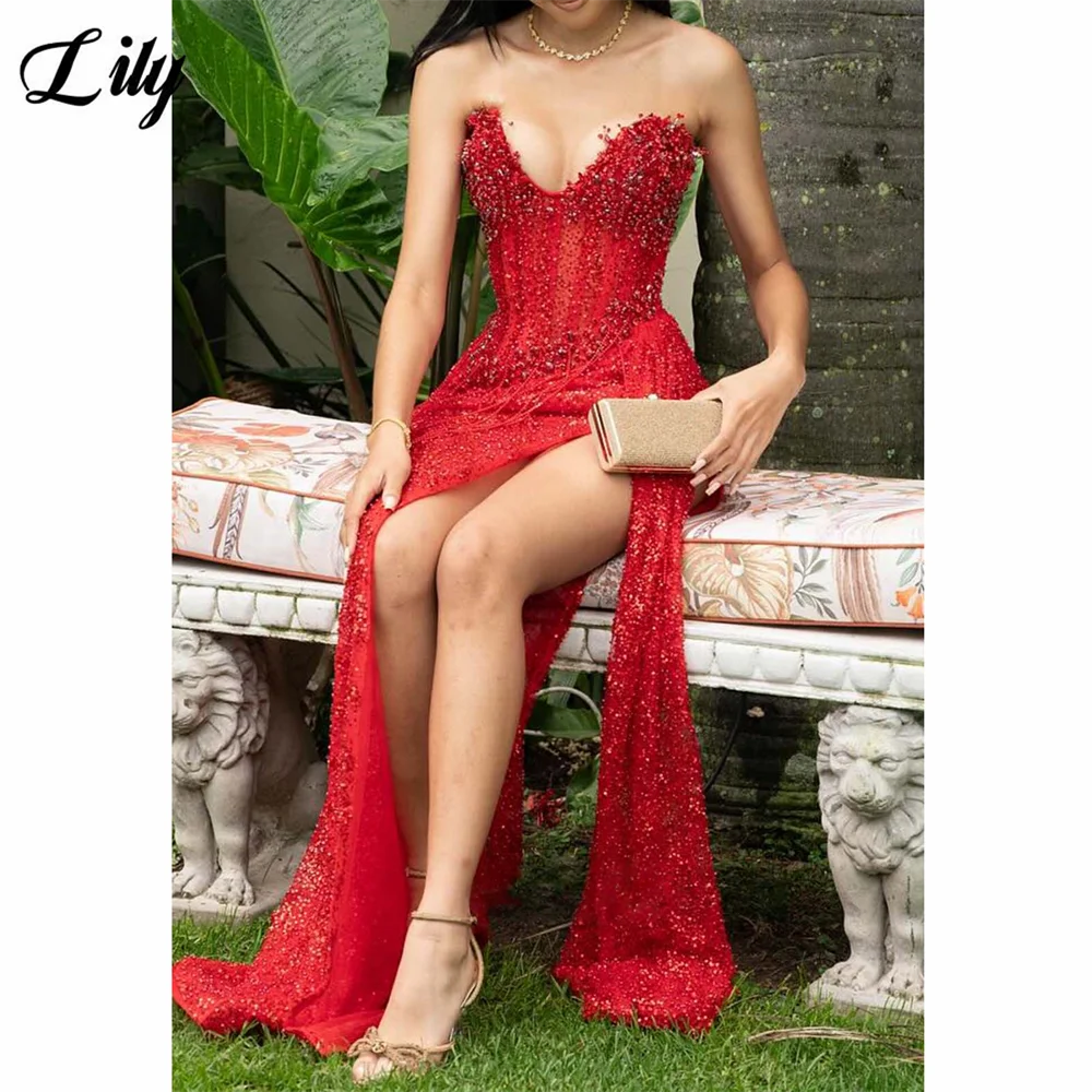 ALI shop - search results ... ... Lily Red Formal Dress Shiny Sequined Deep V-Neck Evening Gown Bead-Embellished Fringe and Side Split Prom Dresses Customized ::: 2021 ::: :::