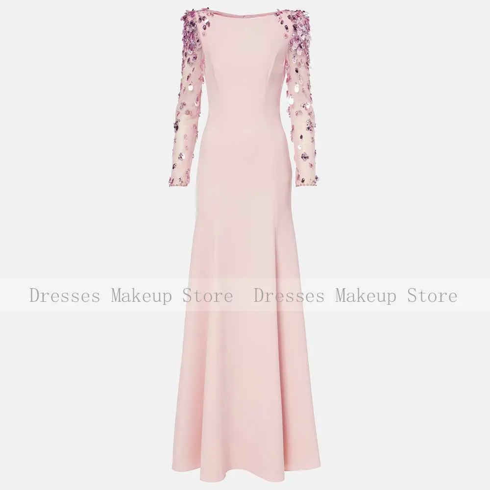 Customized Luxury Evening Dresses for Women Boat Neck Illusion Sequin Full Sleeve Evening Gowns Mermaid Pink Wedding Guest Dress