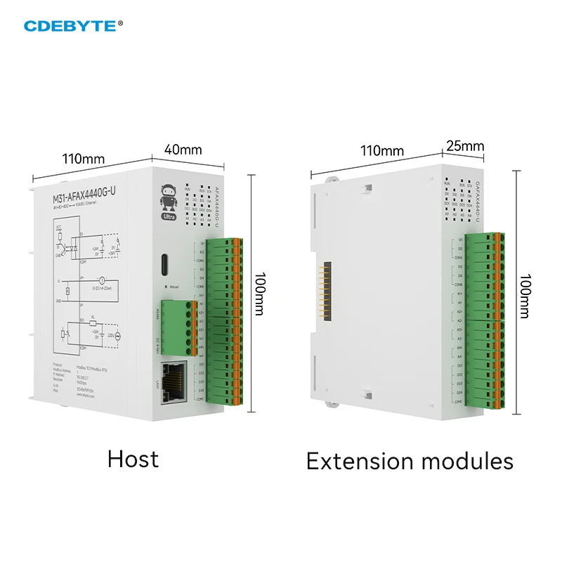 Distributed Remote IO Module Modbus DI/DO/AO/AI RS485 RJ45 NEW Version CDEBYTE M31-U Series Support PNP NPN DIP Free splicing