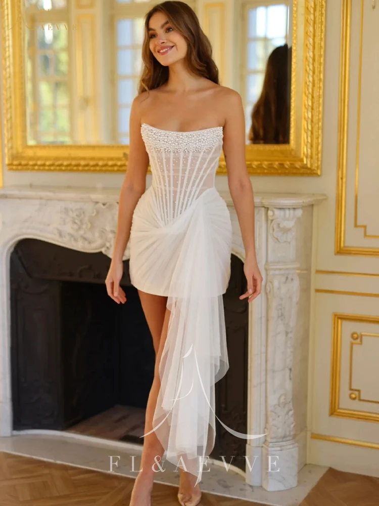FL&AEVVE Customized Short Wedding Dress Beaded Pearls Prom Party Dress for Women Evening Gown Cocktail Gowns Robe