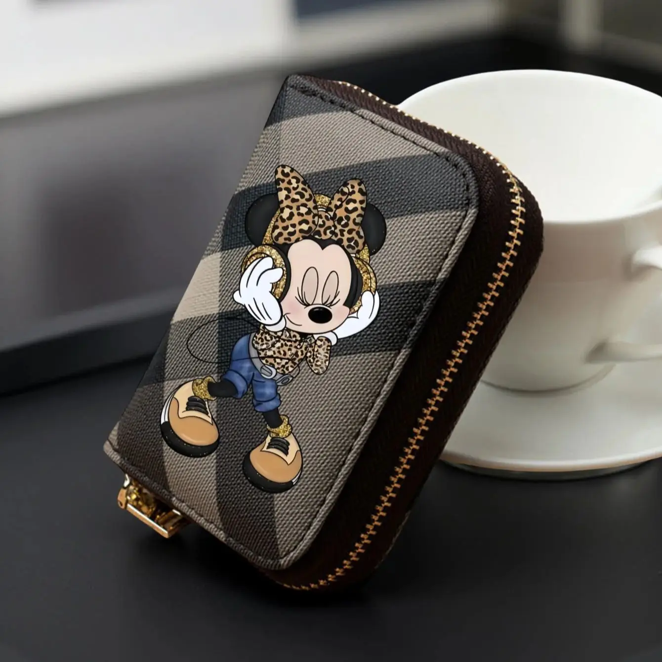 Minnie Plaid Pattern Wallet – Short PU Leather Zipper Coin Purse with Leopard Outfit Print & Card Slots for Women, 3 Colors