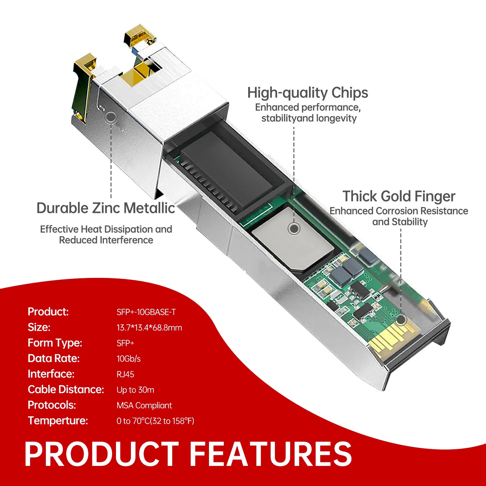 Propatch 10G SFP + to RJ45 Transceiver, CAT6A/CAT7 Ethernet Copper Cable RJ45 to SFP+ for Cisco Mikrotik, TP-Link, D-Link Switch