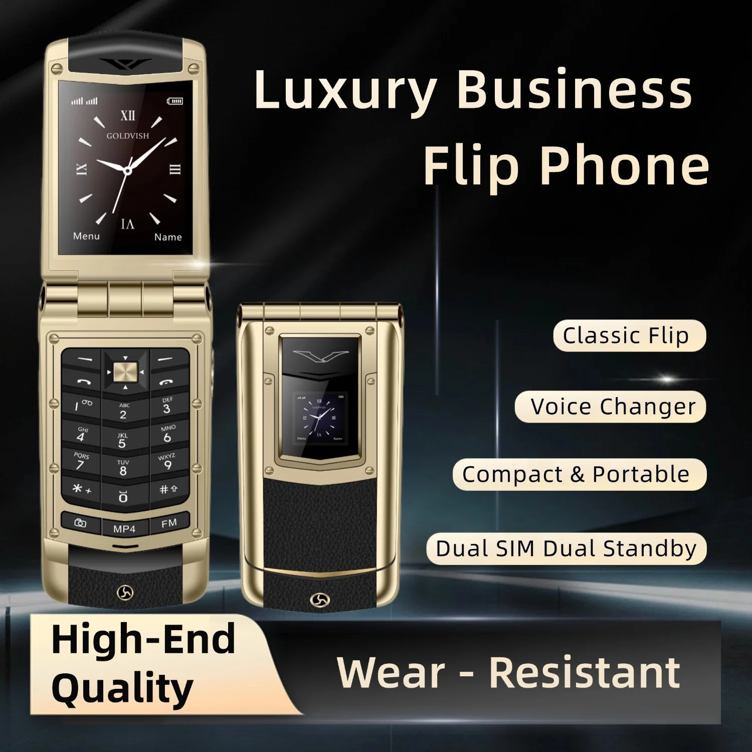 Luxury Metal Flip Phone for Men Dual SIM Business Phone Big Button Dual Screen Magic Voice Blacklist Senior Classic Mobile