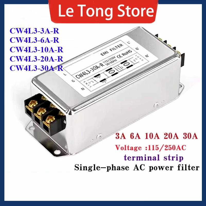 Single-phase AC power filter Three-stage EMI filter 220V terminal/rail CW4L3-3A/6A/10A/20A/30A-R Anti-interference CW4L3-20A-R