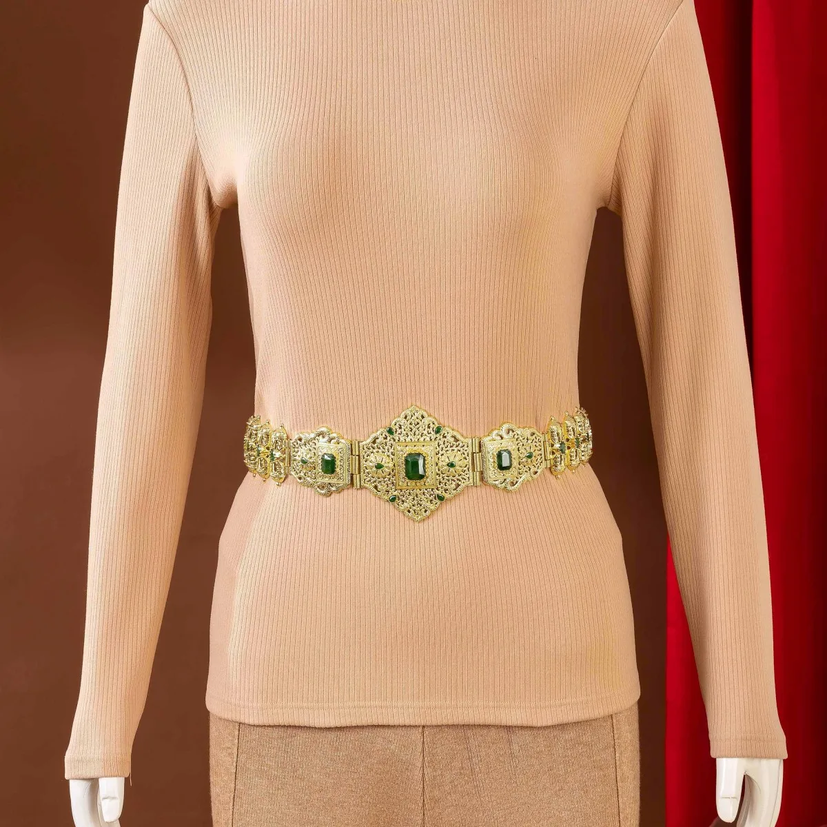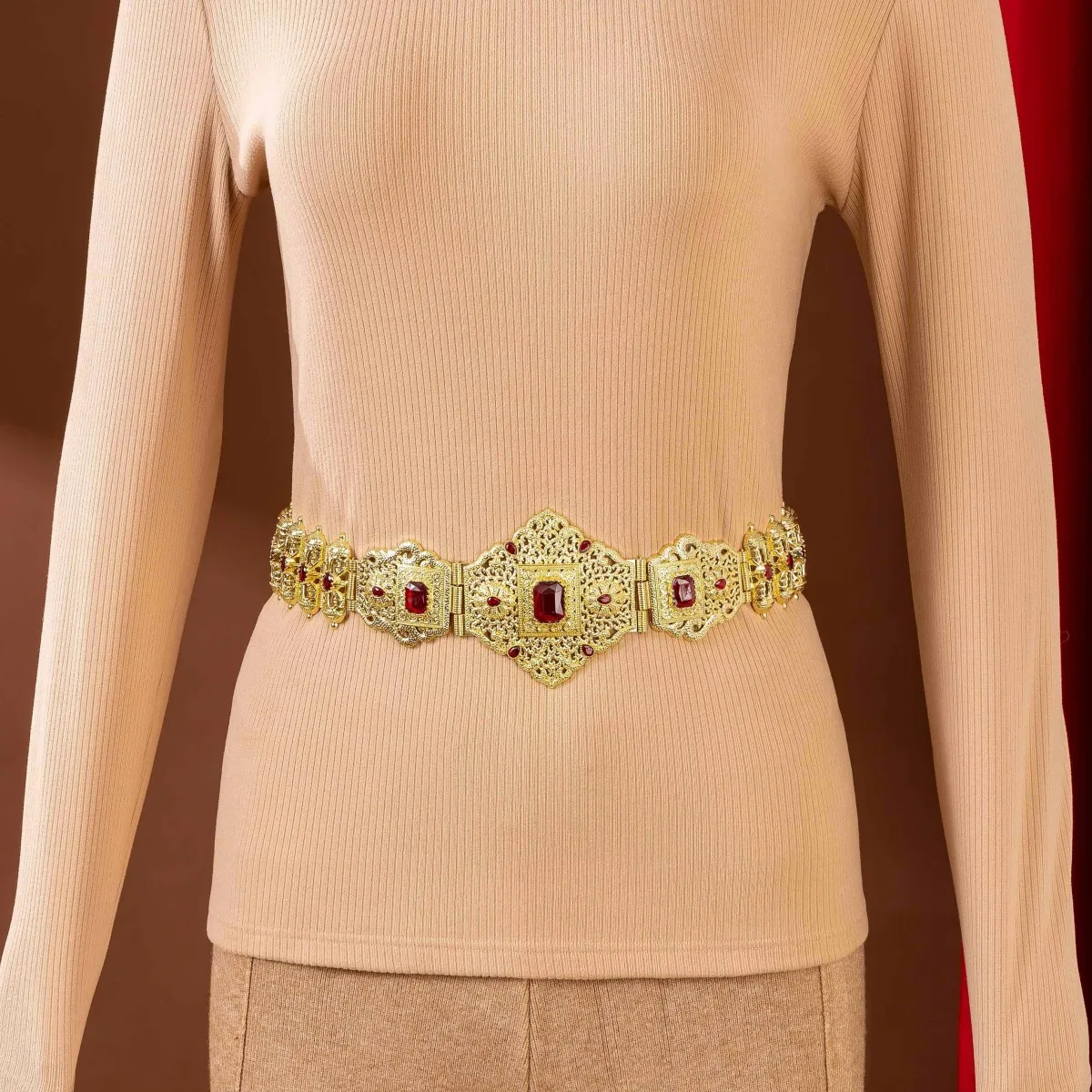 Metal Rhombus-Shaped Hollow Carving Distressed Style With Rope Belt, Adjustable Length. Wedding Accessory For Brides, Waistband