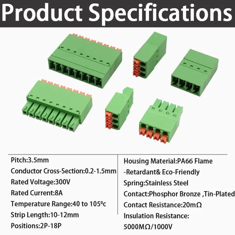 3.5mmFlat Spring-Loaded Connector Kit | Industrial 15EDGKNP Series 2-24P|Precision Equipment & IoT Devices|PA66 Flame Retardant