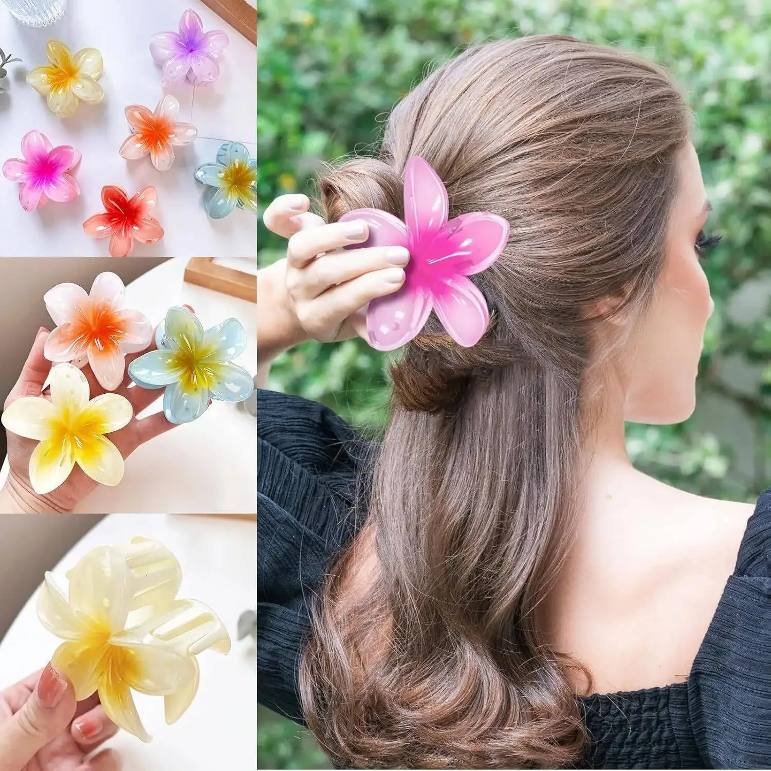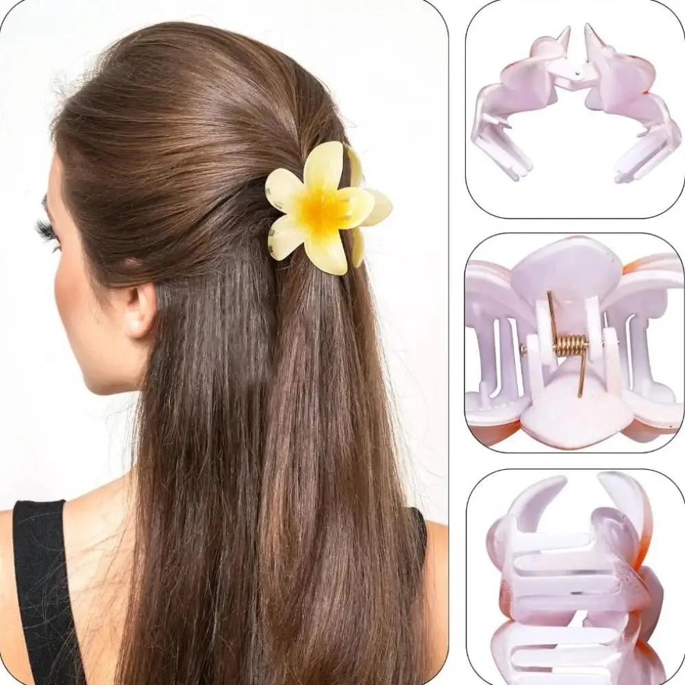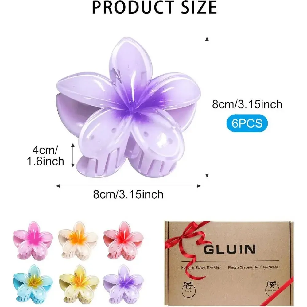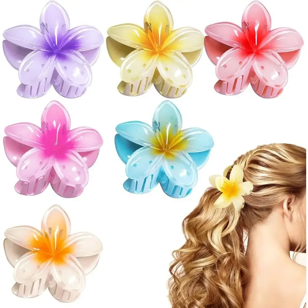 6-Pack Elegant Acrylic Plumeria Wer Claws, Large Colorful Hawaiian Hair Clips Women, Strong Grip For Weddings, Parties, Beach,