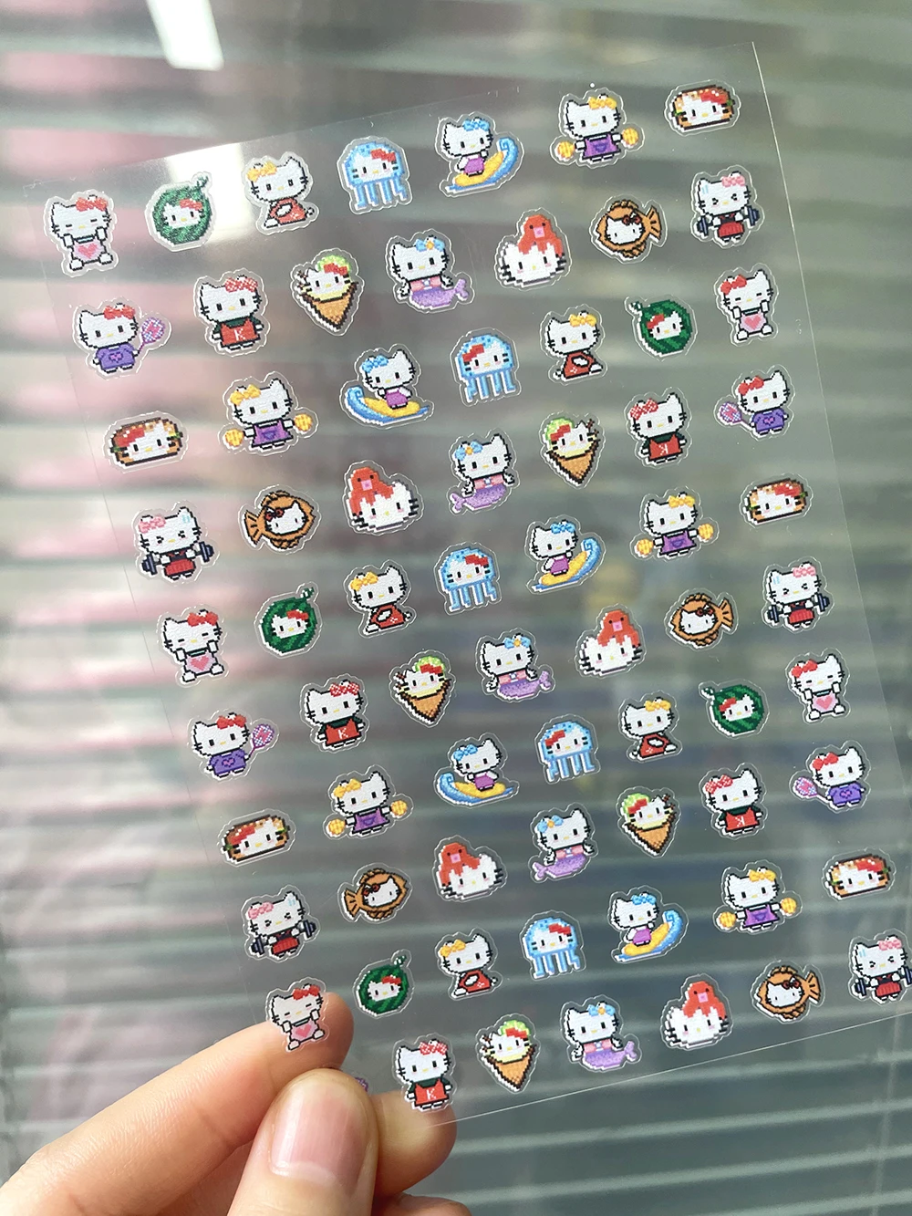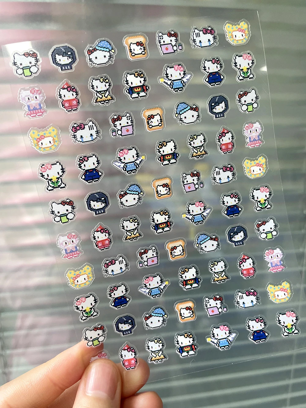 2D Pixel Style Mini Sanrios HelloKitty Nails Art Sticker Multiple Expressions Cute Nail Decal Sliders Anime Nail Art Decorations