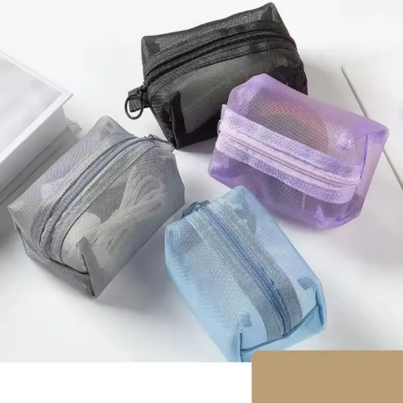 Mini Clear Nylon Mesh Cosmetic Bags Cute Women Small Lipstick Makeup Bags Pouch Data Line Key Earphone Organizer Case
