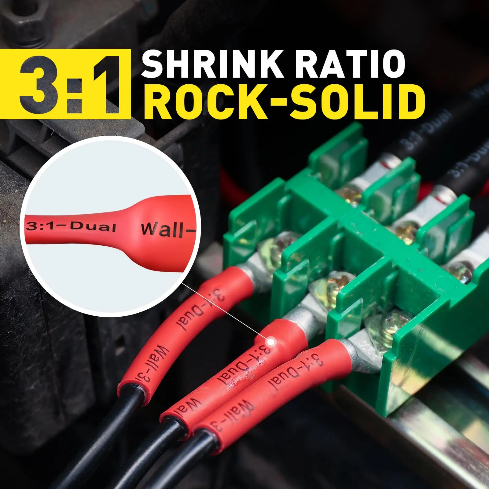 220PCS 3:1 Black Red Heat Shrink Tubing Kit Adhesive Lined Marine Resistant Grade Shrink Heat Shrink Tube Insulation Sleeve