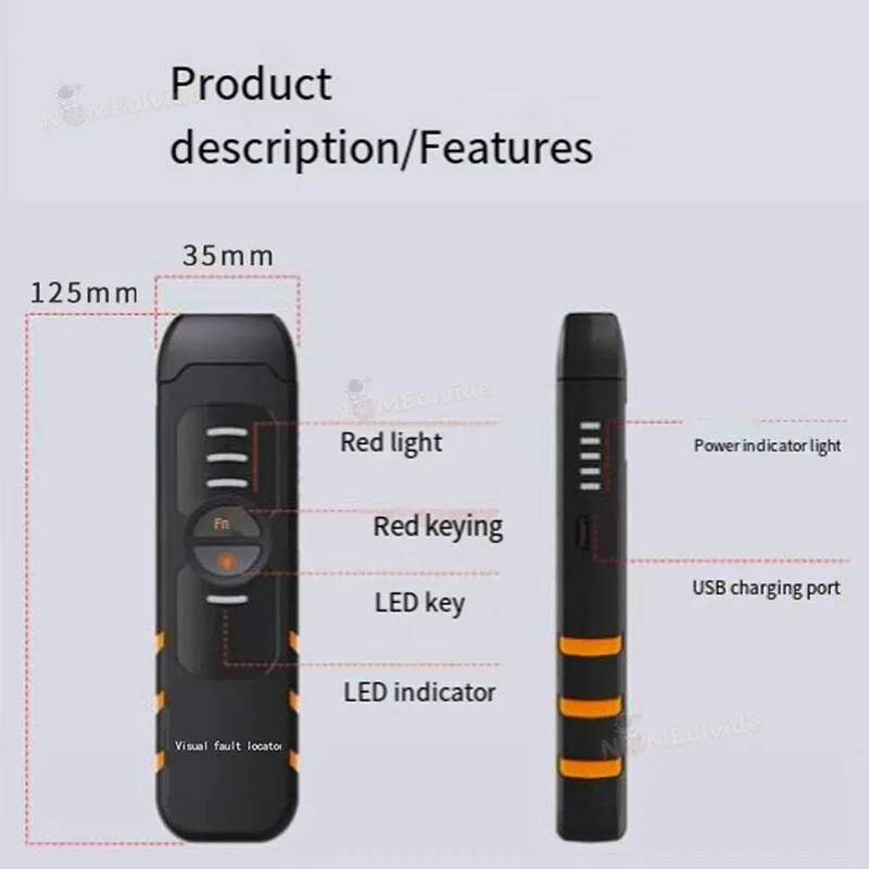 Fiber Optic Tester Tool VFL 30KM 10MW 30MW FTTH Laser Optical Red Light Pen Visual Fault Locator USB Charge LED Lighting