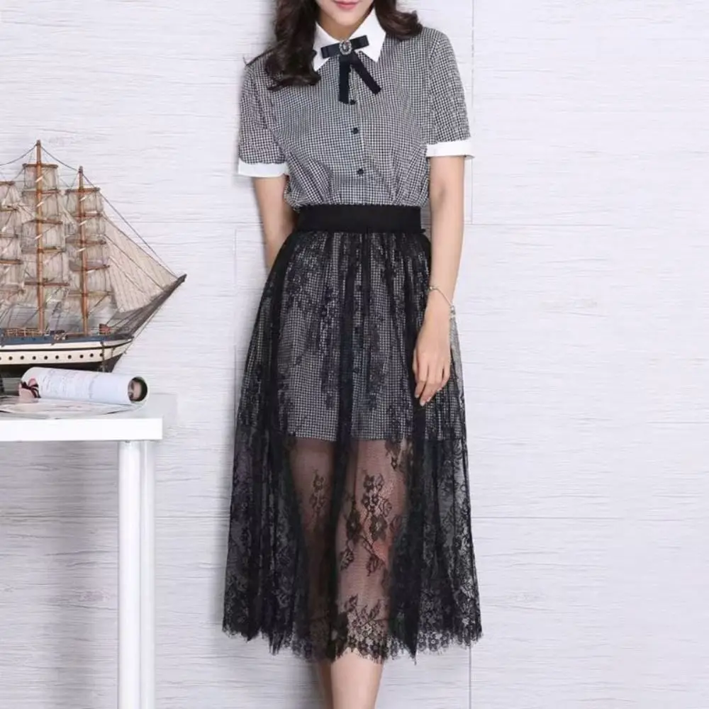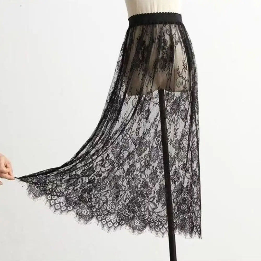 Fashion Flower Lace Underskirt Slips 75cm Anti-glare Mesh Underskirt Slips Dress Loose Hight Waist Lining Petticoat Women Girls